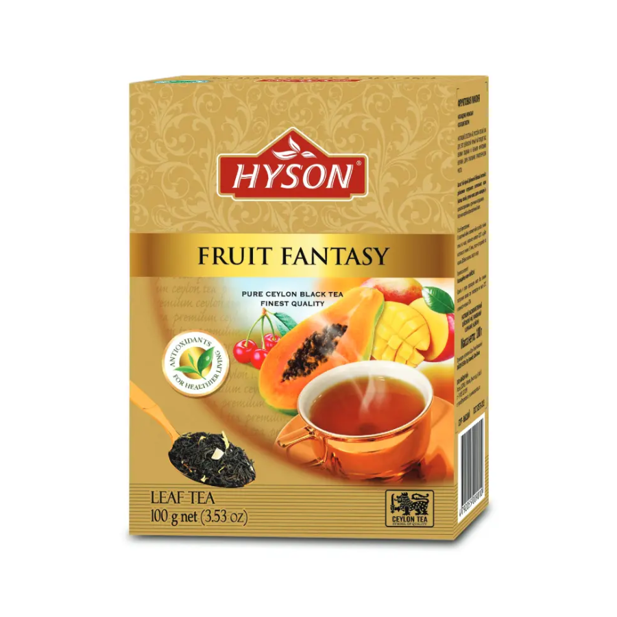 Pasinerk į egzotišką skonių šokį su „Hyson Exotic Fruit Fantasy“ – juodosios arbatos mišiniu, kuris atgaivina pojūčius ir kviečia trumpam pabėgti į saulėtą vaisių rojų. Kruopščiai atrinkti juodosios arbatos lapeliai susilieja su tropinių vaisių aromatais, sukurdami sodrų ir intriguojantį skonį, kuriame juntami ananasų, mango, pasiflorų ar net citrusinių vaisių atspalviai.