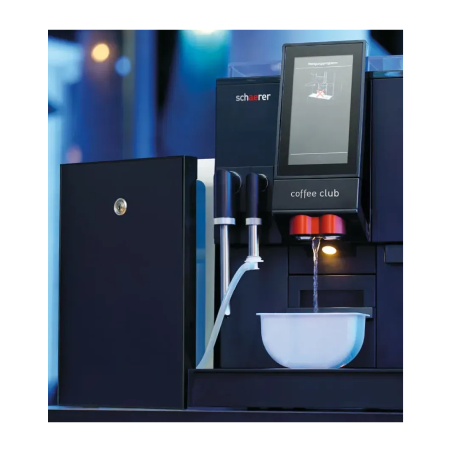 Schaerer Coffee Club“ ne tik nuostabiai atrodo – jis pasižymi naujovišku valdymo principu ir kompaktišku dizainu, kuris leidžia kavos aparatą statyti bet kokioje erdvėje. Integruotos išskirtinės „Schaerer“ technologijos, kaip „Milk Smart“ šviežio pieno sistema ir daugybė kitų naujų funkcijų leidžia ruošti aukščiausios kokybės kavos gėrimus. Naujoji „SteamIT“ funkcija leidžia pašildyti puodelį iki tinkamos temperatūros naudojant reguliuojamus garus – kad gėrimo kokybė būtų dar aukštesnė. Modelis, skirtas pirmajam žingsniui į profesionalų lygio kavos ruošimo pasaulį. „Coffee Club“ sukurtas paruošti iki 80 puodelių per dieną – jis idealiai tinka nedidelėms maitinimo įstaigoms ir viešbučiams, parduotuvėms ir savitarnai biuruose.